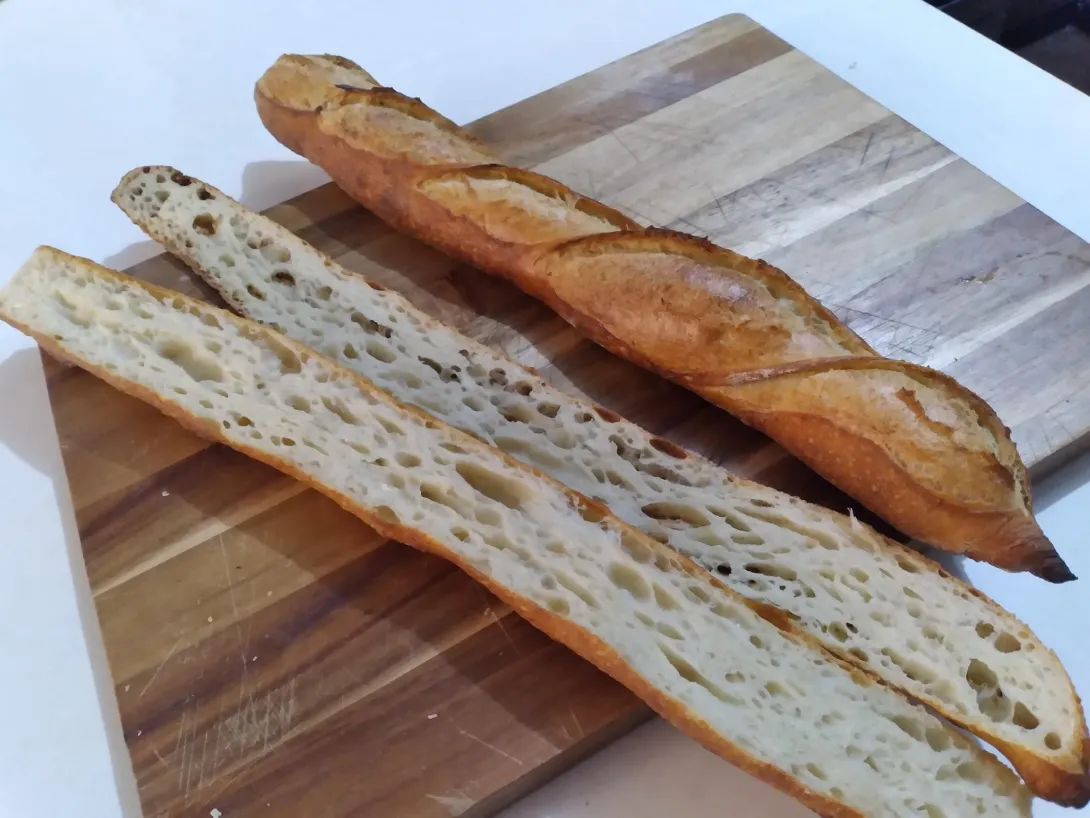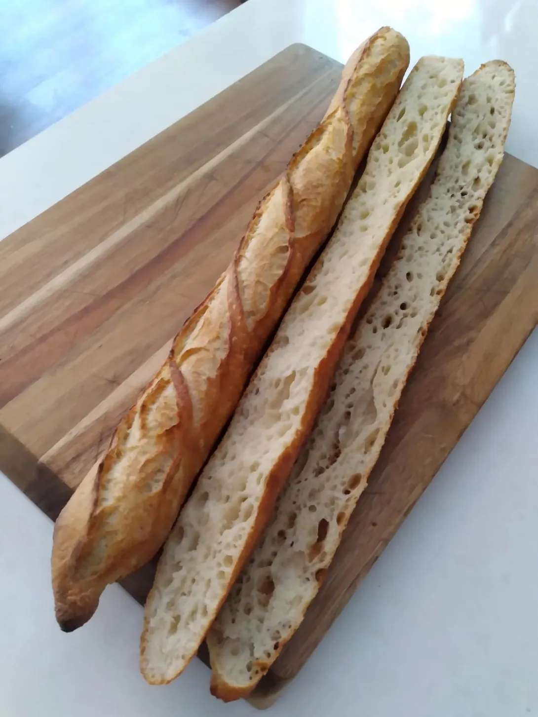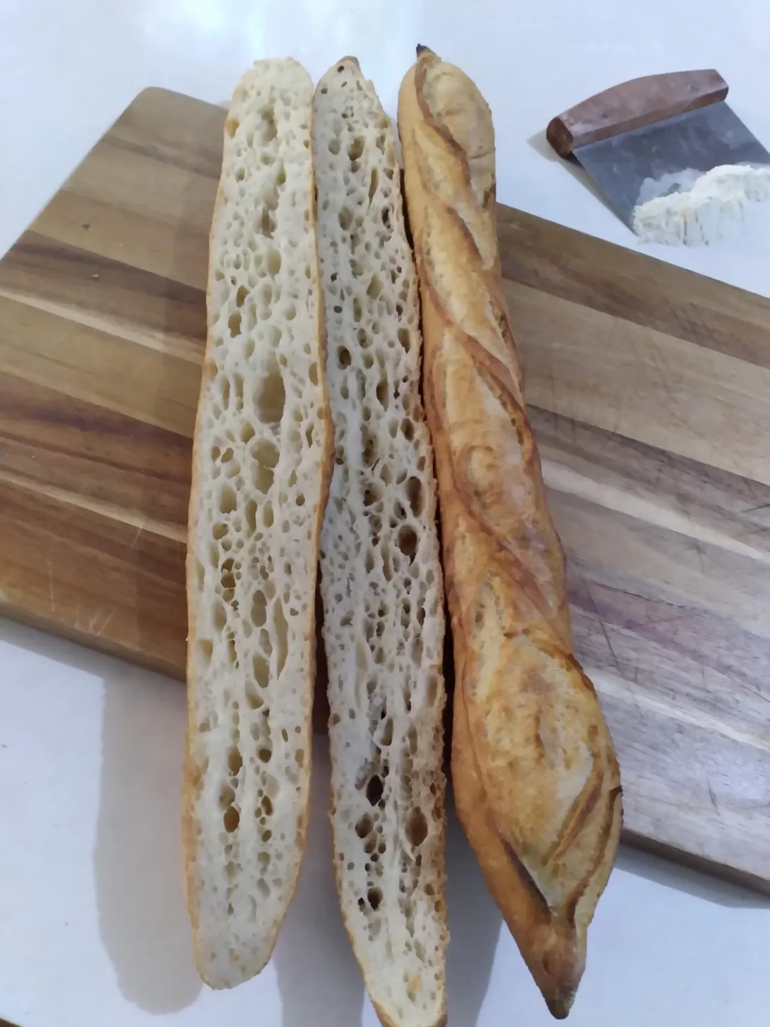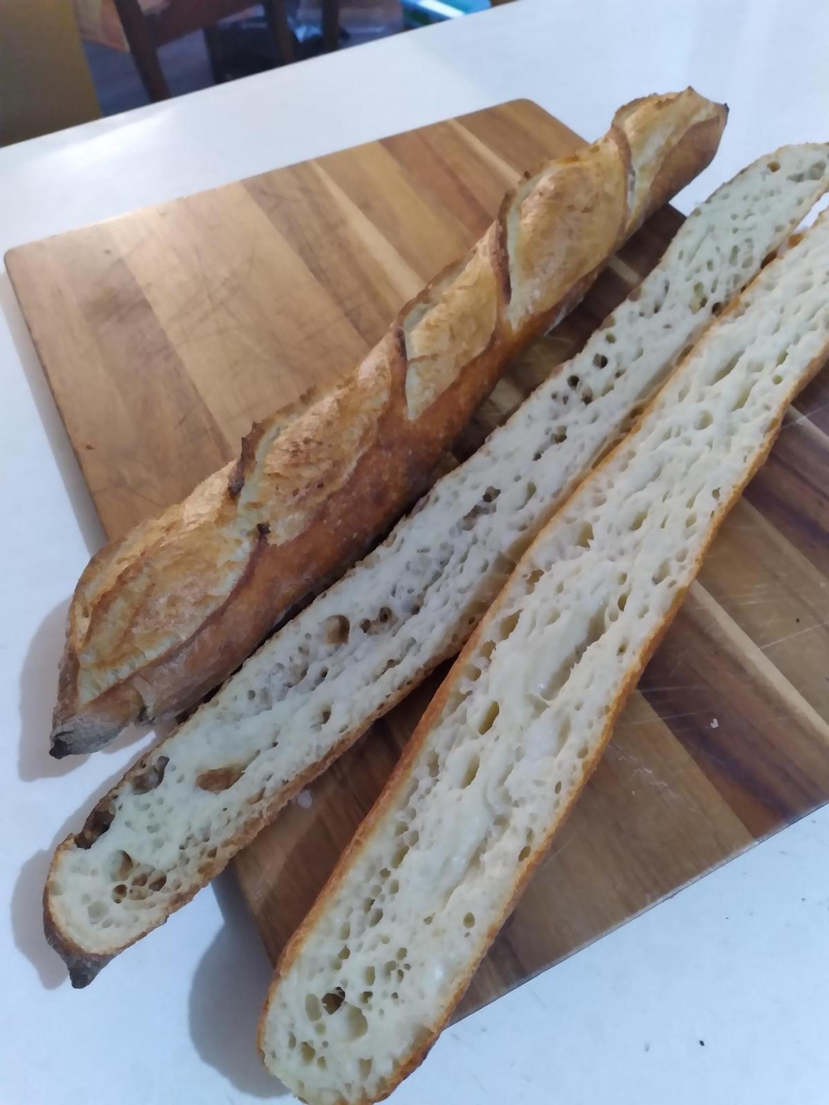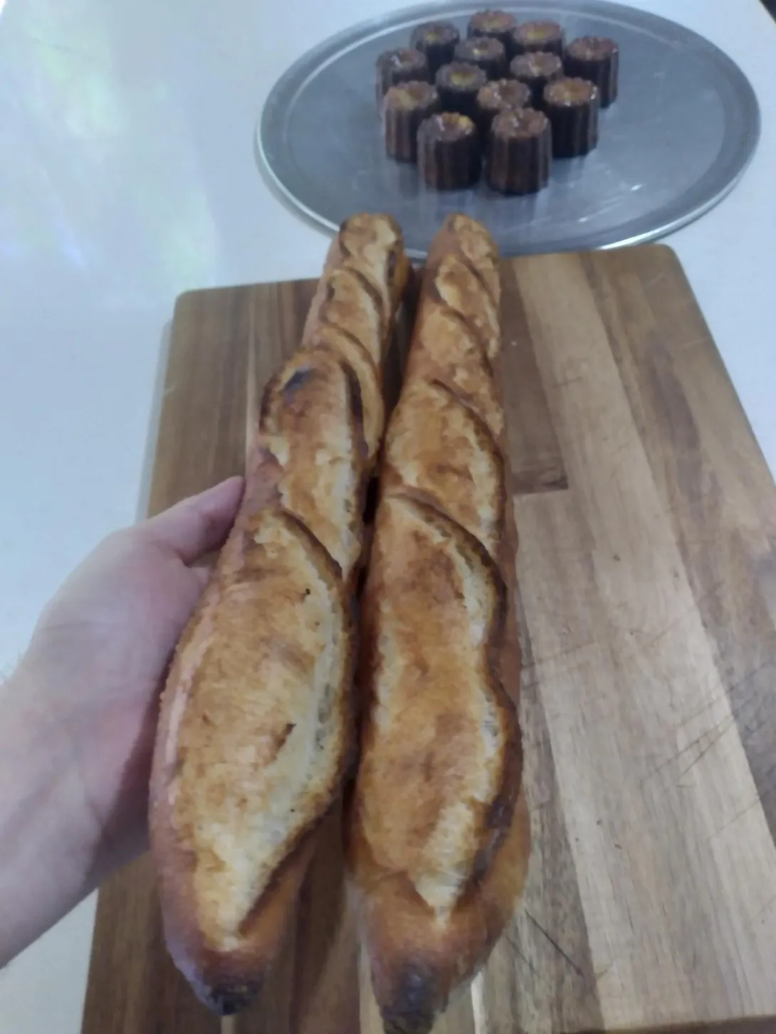 Woah did I get a surprise today, extra dark baguettes.  Needed a boost of heat toward the end and so I activated the top elements on my bread oven.  Meanwhile went to inspect my canele progress and kinda forgot about the bread.  Got a bit darker than I usually shoot for.  Kinda happy though- cheers alfanso - did I make proud going to the dark side ?