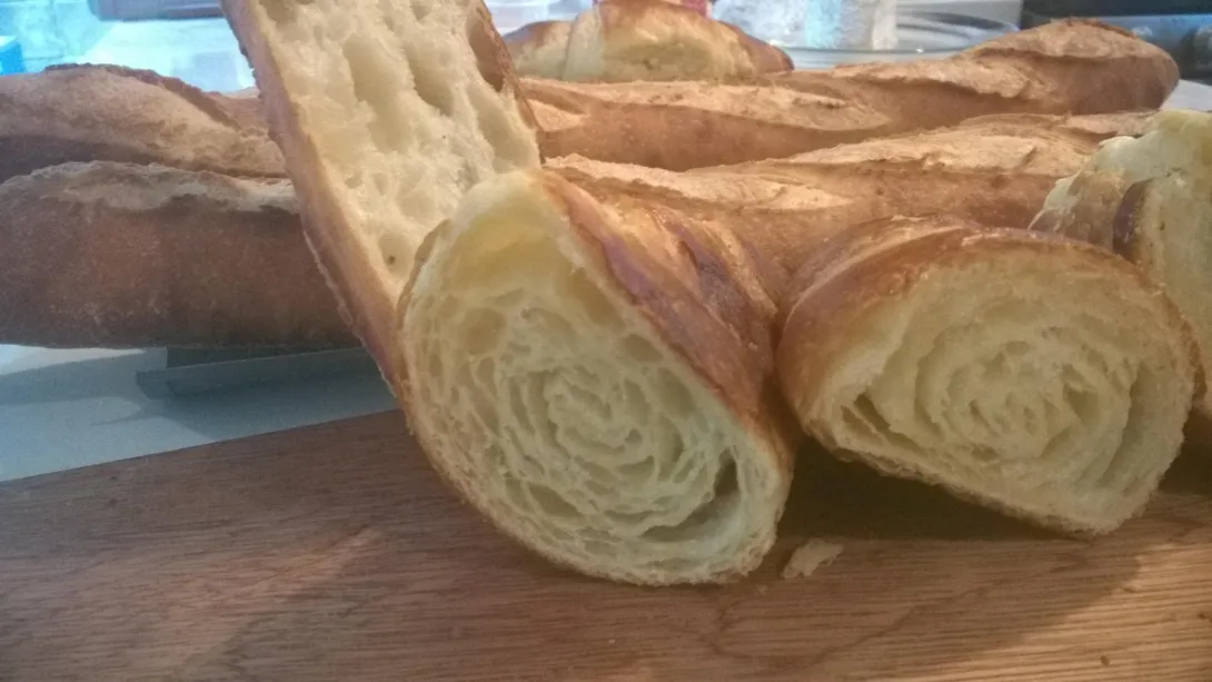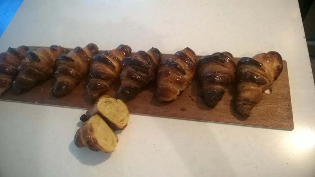 Greeting - been a little while since I posted thanks to being busier than normal but thought I'd drop a snap of a mixed bake - bread and croissants. This sure does challenge your timing skills and this time ended up with really nice crumb on the baguettes but a little overproofed croissants - no big deal - still pretty edible.
