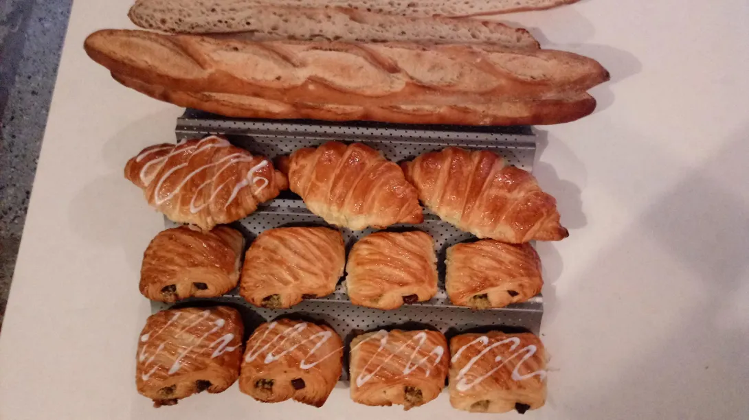 Objective today was to improve on some former efforts to achieve a more open crumb with croissants etc. Unfortunately as i began dough prep last night I was almost out of the flour I have been using and, have discovered works nicely for the lamination process (francine bio t55). This makes a really great dough that glutenizes beaitifully just not a great bread flour as its missing some af the additives (malts etc) - this is straight flour at about 9.4% protein. So only having about 250g left for a 500g batch I, added the other 250 as gold medal AP.