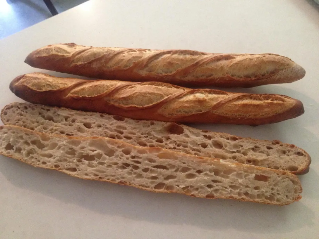 Baked 13 canele today (pastis flavored ... Yyyyyyummm) and noticed for whatever reason really nice crumb structure. A quick point for anyone delving into this pastry - crumb can sometimes come out more like a custard often times near the bottom - if you take a close look at the sliced sacrificial one here it's evident that the entire inside is slightly bubbly resembling bread and this is sort of the objective however some bakes I do don't always look like this and resemble sense custard near the bottom.