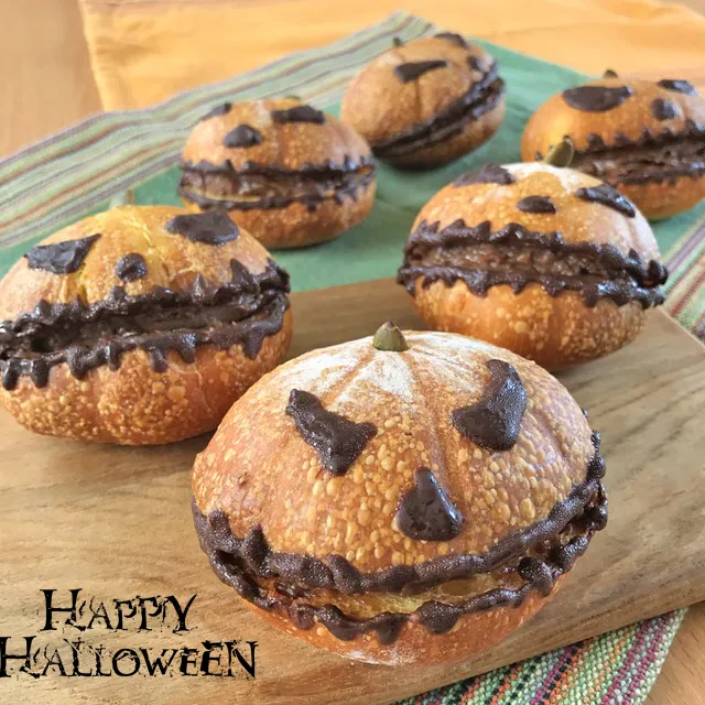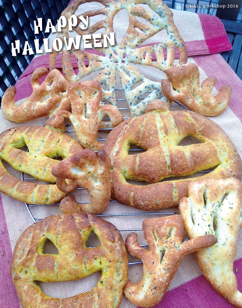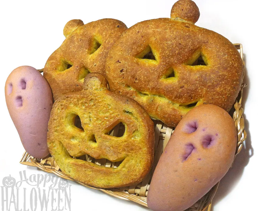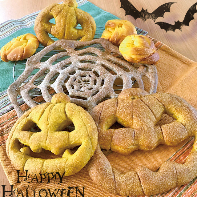 Jack o'lantern is made with arranged Fougasse dough (with mashed pumpkin)
