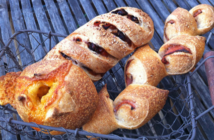 petit cheese bread, fig+bacon bread and ham-epi