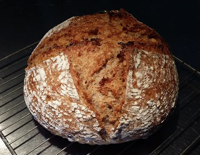 I have a profusion of rhubarb (and other things, but that's another story) from the garden right now, so I've been canning and preserving. Yesterday I made a batch of sweet pickle relish and another of rhubarb chutney. I've been thinking of how to use rhubarb in bread, so I decided to do a test loaf of sourdough ('cause, I had, like, nothing else to do, right?) with some of the chutney ingredients.