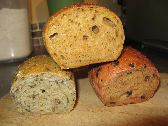 Well, I am chuffed. I've been working on version of 'beer' bread that has all kinds of good things in it. I've been inspired by several people (Cedar Mountain, danni3ll3, dabrownman among others) and was also spurred to action by a happy little relationship. My regular beer bread is mostly white flour with a poolish starter made from my husband's pilsner-style beer. The place where he gets his beer making supplies (has been for about 30 years) asked if he could bring in some bread to see if they could sell it, and that worked out well.