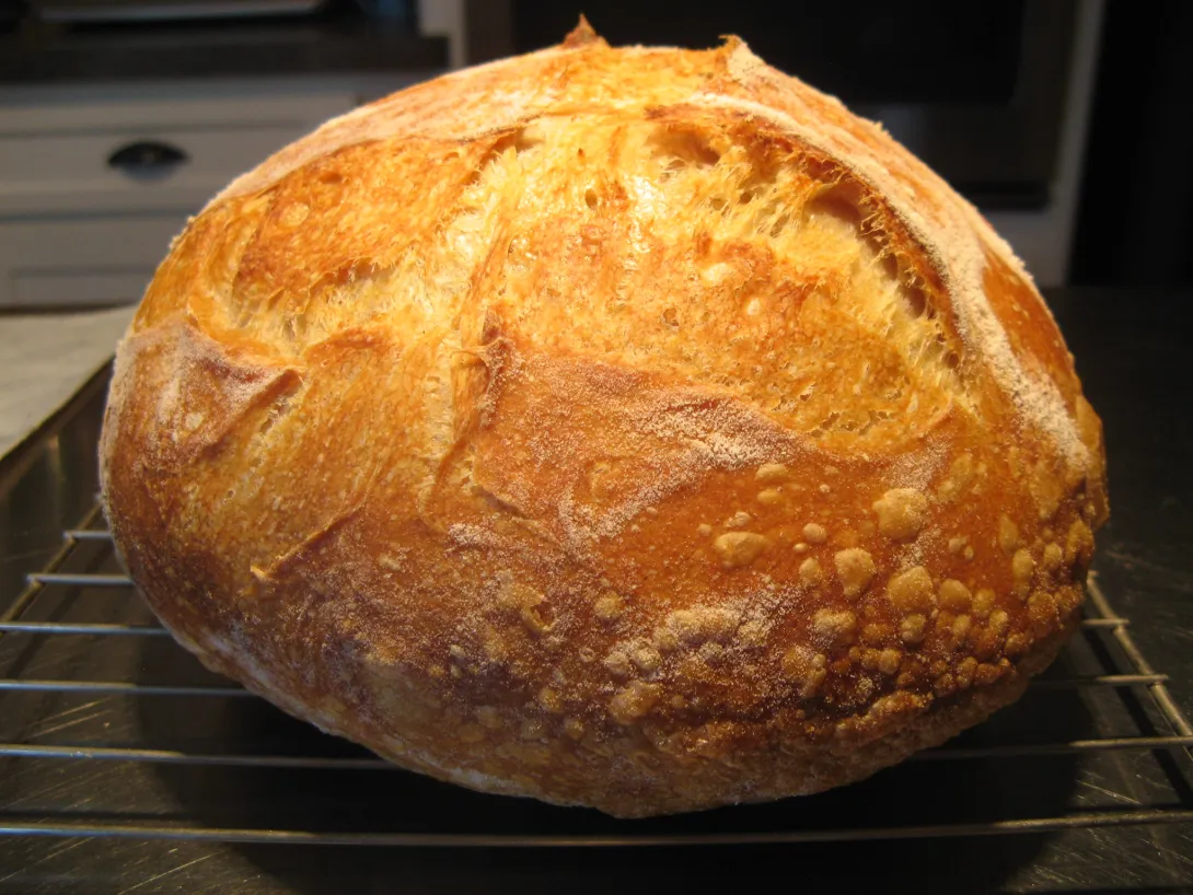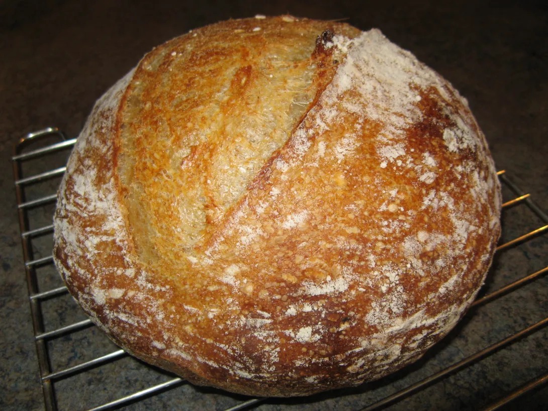I find the flour here in the UK to be a bit of a challenge in itself, being used to Canadian bread flour. The dough was very, very sticky and took a long time to develop. I ended up with so much stuck to me and the bench, even after 10-12 minutes of slapping and folding, that there was barely enough left for the bread! Oh well, a challenge is meant to be challenging, after all.
