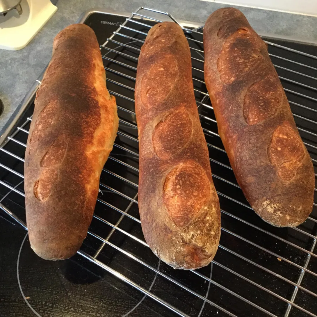 Following on from reading Trevor's Crumb Mastery I continue my quest to improve the crumb on my bread and up my skill level with wet dough and shaping. We had eaten the Hamelman 5 grain levain so the freezer was nearly empty of bread. Trevor had mentioned his "Premix" method so decided to have a go at Champlain sourdough, a 70% hydration. should be a piece of cake! yeah right!