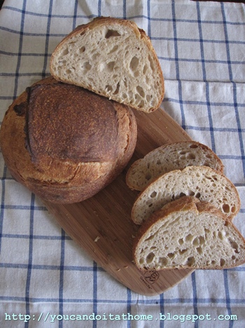 Well, I can be easily distracted with other baking projects, bread ideas, new books, etc. Now, two months later, I finally got the chance to make a plain sourdough with toasted wheat germs added.