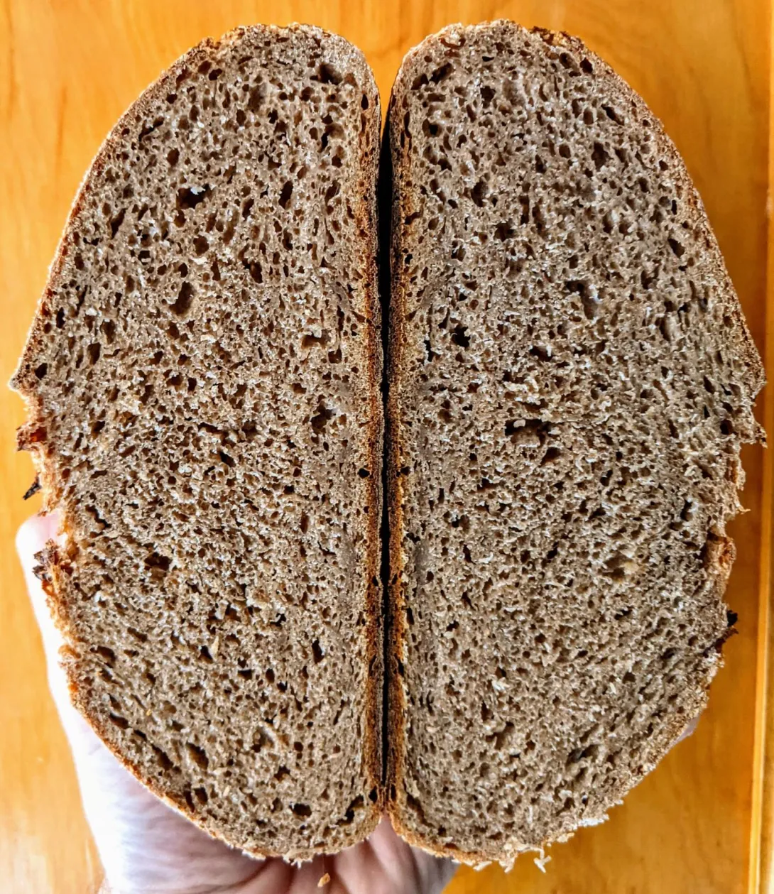 My starter has been temperamental lately as I've been adjusting its diet so I returned to my roots with this one in effort to regain some focus. I still maintain a cool stiff starter but after switching from 100% rye I had some issues and began adding about 25% back. This is all because my latest attempts with desem included 20% PFF and I found that 20% rye was too overpowering to the flavor of the hard red I was using. So this loaf returns to my longish ferment with lowish inoculation and minimal handling.