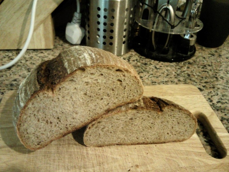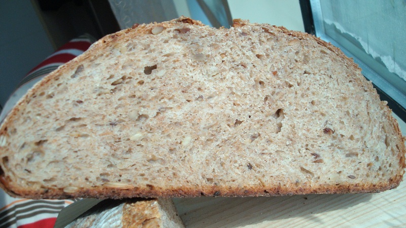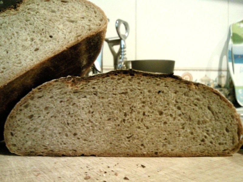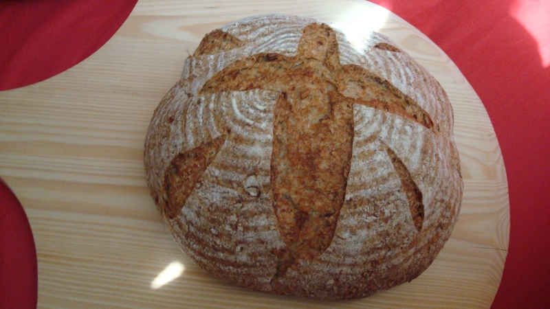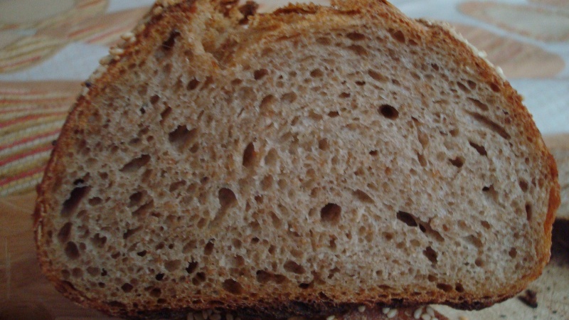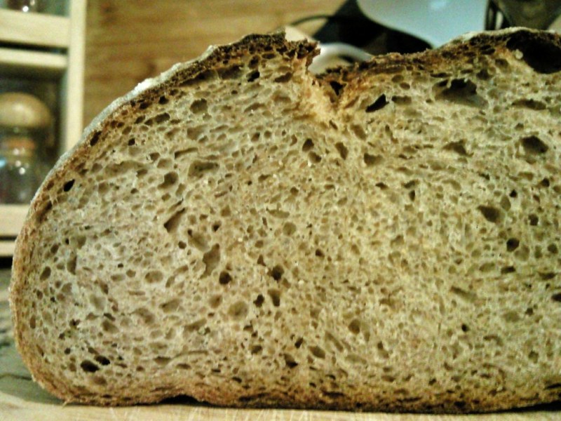 The result was spectacular: the loaf gained color so fast, and the crust was crispy out of the oven. Oven spring was very good too. I left the loaf in the roaster for 20 minutes (should have been less: the bottom got charred).