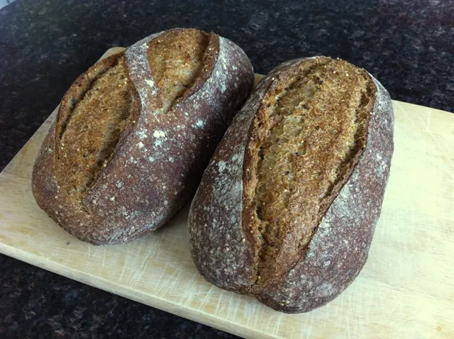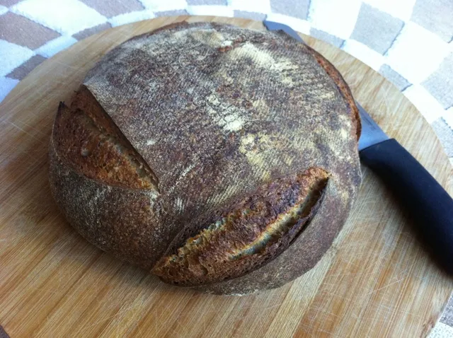 Since the day I baked my first San Francisco Baking institute’s Miche (Posted by dmsnyder here) , I wanted to have another go at it soon. Alas, I have been distracted by several other formulas and books and eventually ended up putting it off. Two days ago, I was reminded by the formula when I saw my wheat germ bag sitting in my freezer and decided to give the formula another whirl.