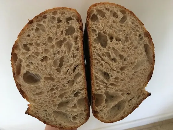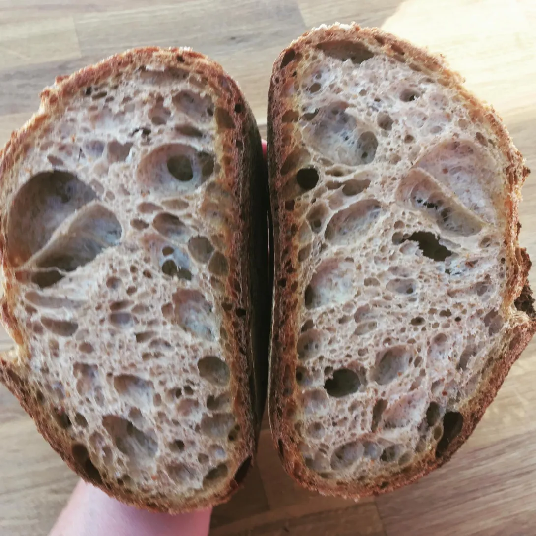 I have started using their double booster feeding with good results and also love their mixing schedule introducing water in steps. Now I have been doing that anyway but love the shorter intervals and tried going beyond by normal comfort zone and upping by feel..ending on 87% hydration for a loaf with 2O% WW, 30% Canadian white and the rest Shipton Mill No. 4 Strong White..