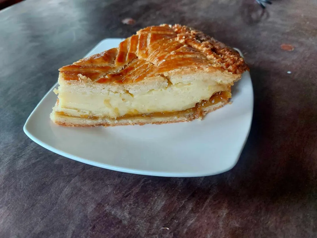 Mango Gâteau Basque. I put a twist on the French classic by using our local mangoes that are in season right now. I used not so ripe mangoes to offer a tart balance to the rich custard like what cherries do in the original. The contrast between the crumbly crust and the creamy filling with the fragrant mango punch is just delightful!