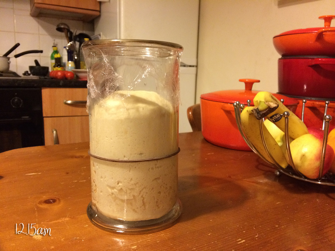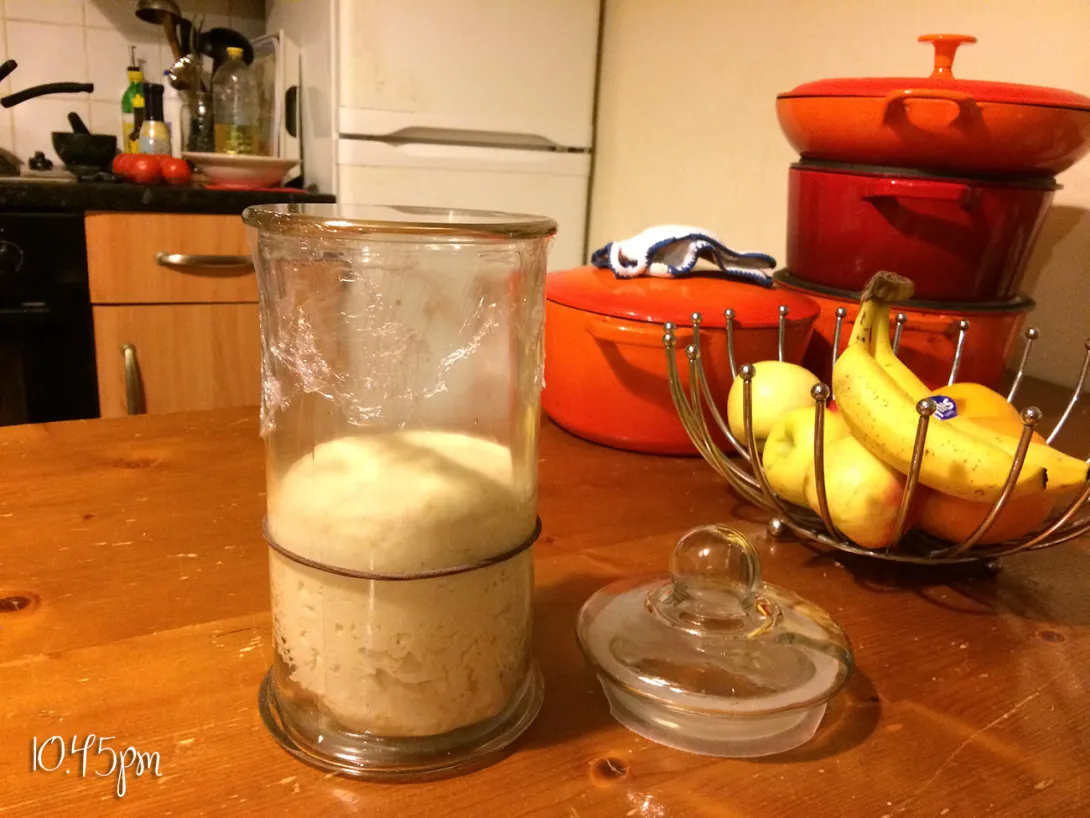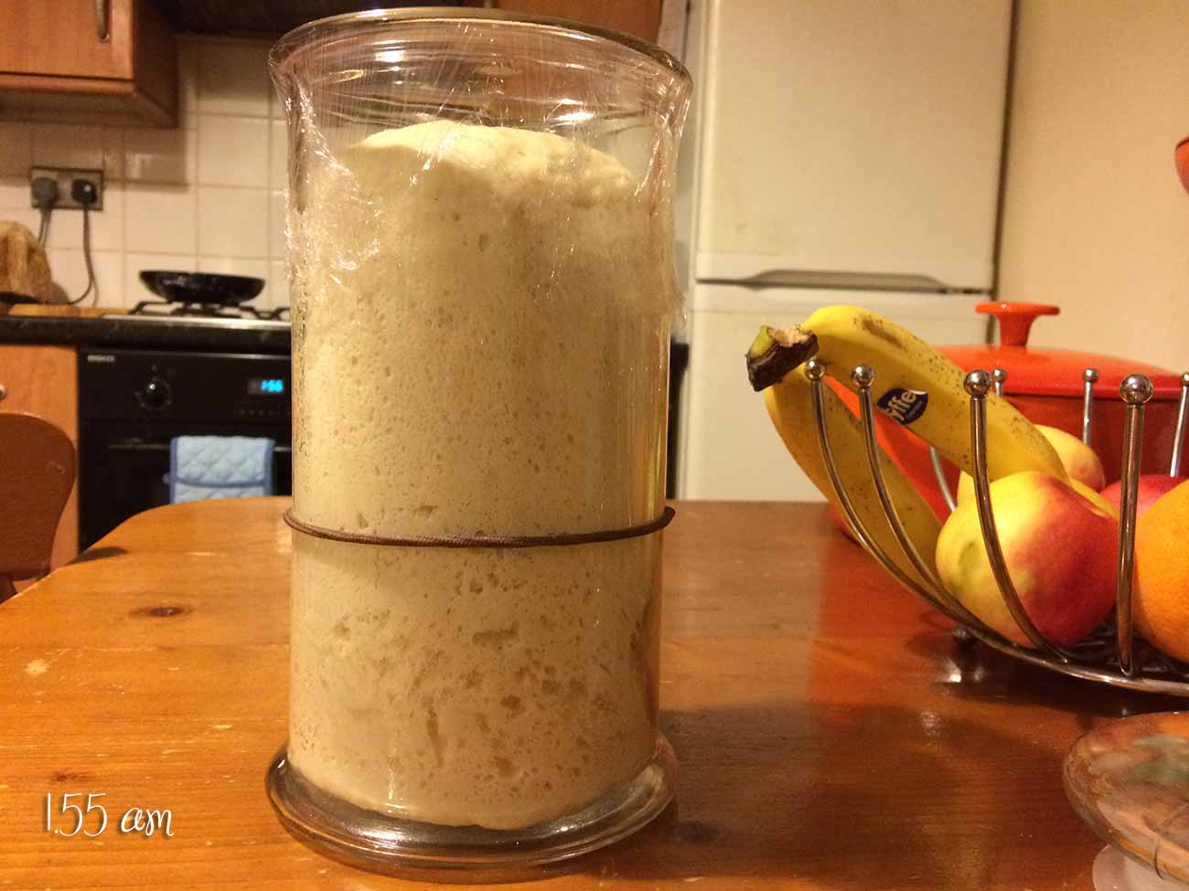 I fed the Starter at 9.55pm tonight for tomorrows baking and put a rubber band where it was when just fed.