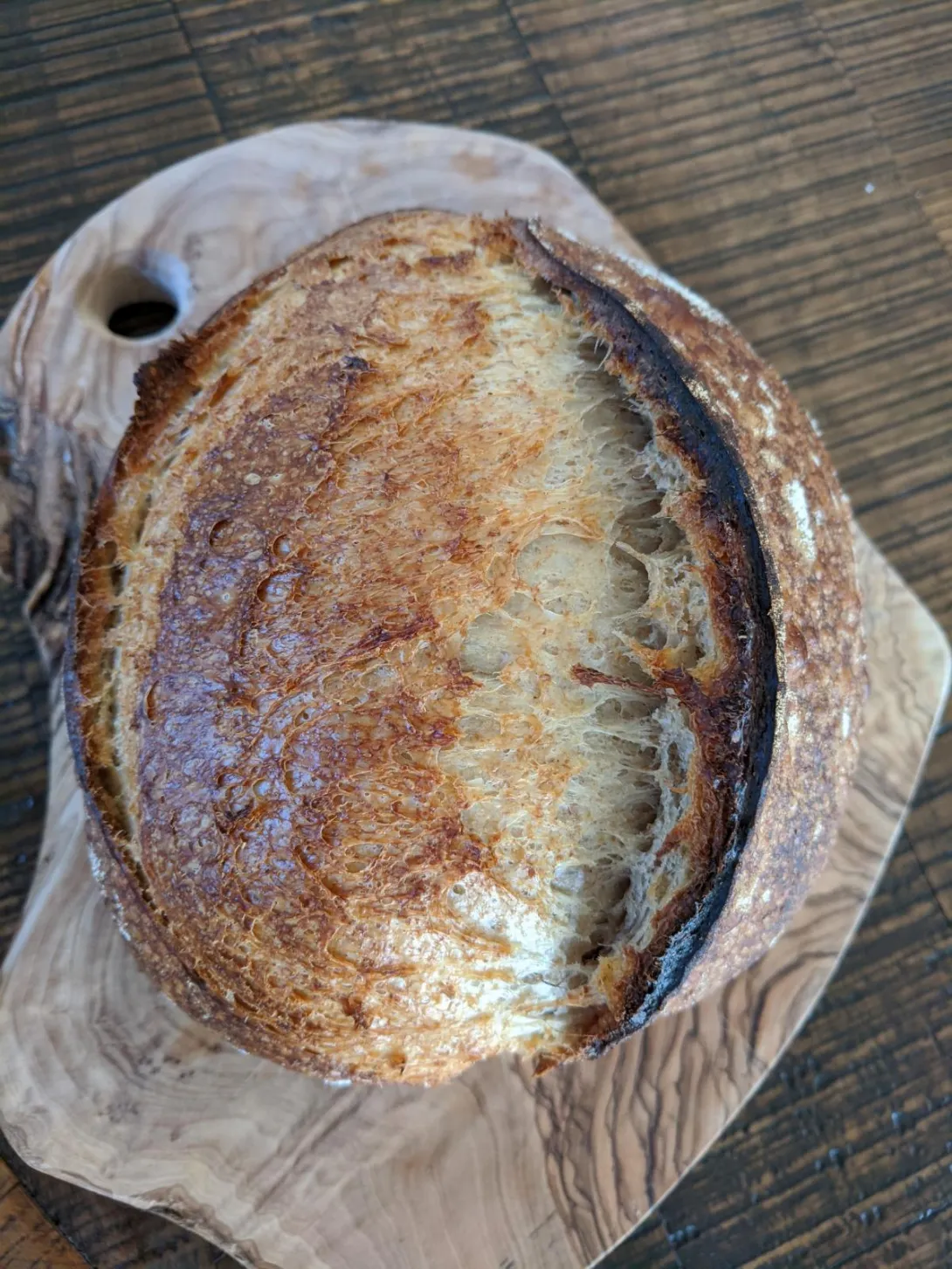 Here is a sourdough loaf using 100% semola rimacinata by Caputo. It resulted in a mildly flavored and soft crumb, but a very crisp crust, which is the perfect combination.