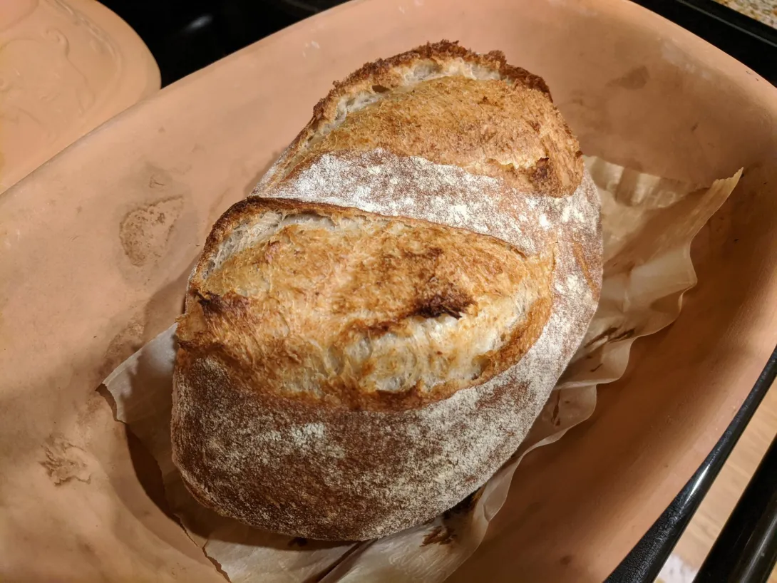 Made some yeast water using fresh grapes. Really easy to make, just crushed the grapes coarsely and let ferment for 3 to 4 days in room temperature until the foam on top reduced activity. Once it is done it will look like rose wine, you may even taste if you like. Next step is to mix that liquid and some fruit with flour to make the levain, which took about 12 hours to peak. I actually had to put it in the oven with the light on to speed up the process as I wanted to bake in the same evening.