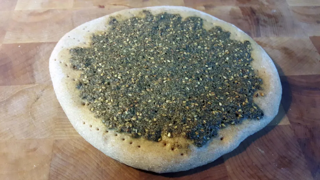 Pita+zaatar bread Had a bunch of errands to run this weekend, and not a lot of time to prep for a bake--- perfect time to make some pita. It's 100% whole grain wheat flour, tastes great. Log in or register to post comments1 commentView post