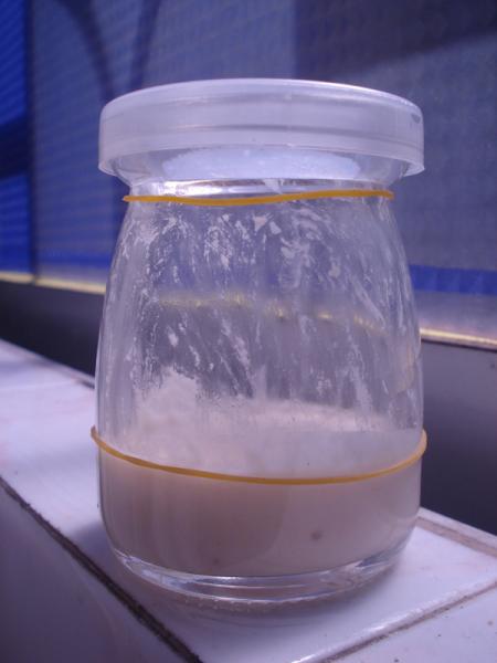 Mix the wholewheat flour and water in the bottle and put the lid on.Place the bottle under shadow.I just want to do some experience,so I just used a bit of ammount.Now what I have to do is to wait.I hope to see bubbles created in the bottle some time later.