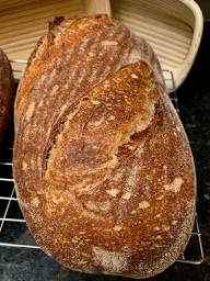Got my weekly bake done today, and all went smoothly. The only real adjustment to my usual process was due to an early dinner that we had scheduled to celebrate our youngest daughter's birthday with her grandparents. Instead of my usual 1.5 hour final proof at RT (before retarding for a few hours), I only let it proof at RT for .5 hours, then into the fridge for about 6 hours. Everything came out well (no crumb shot yet, but I expect it will look the same as usual, perhaps a little tighter based on the dough feel, and how it looked out of the fridge.)