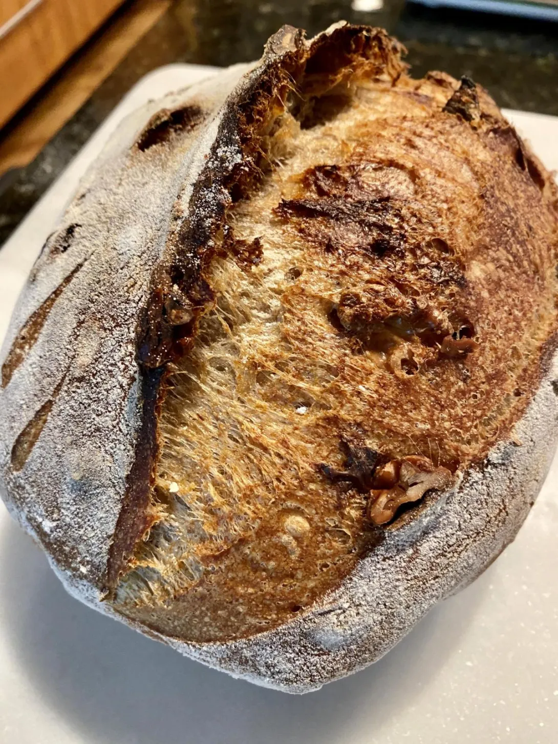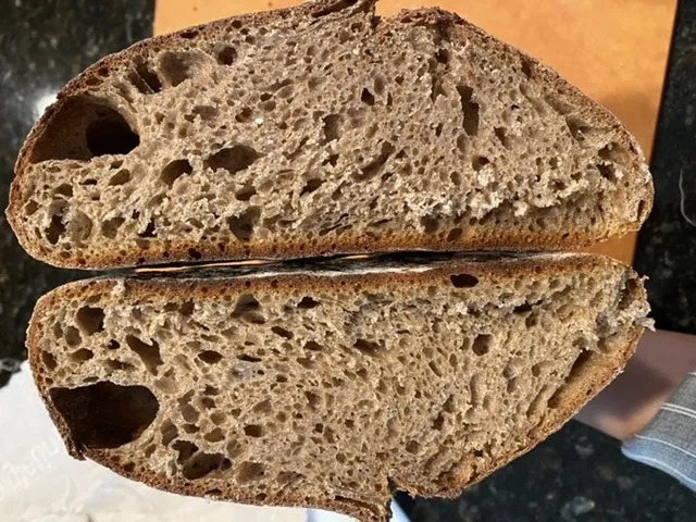 Pleased to say this recipe worked out well (adapted from Full Proof Baking's wonderful blog) - she recommended doing a cold, overnight bulk fermentation and I think that really did the trick here. Very minimally handled overall.