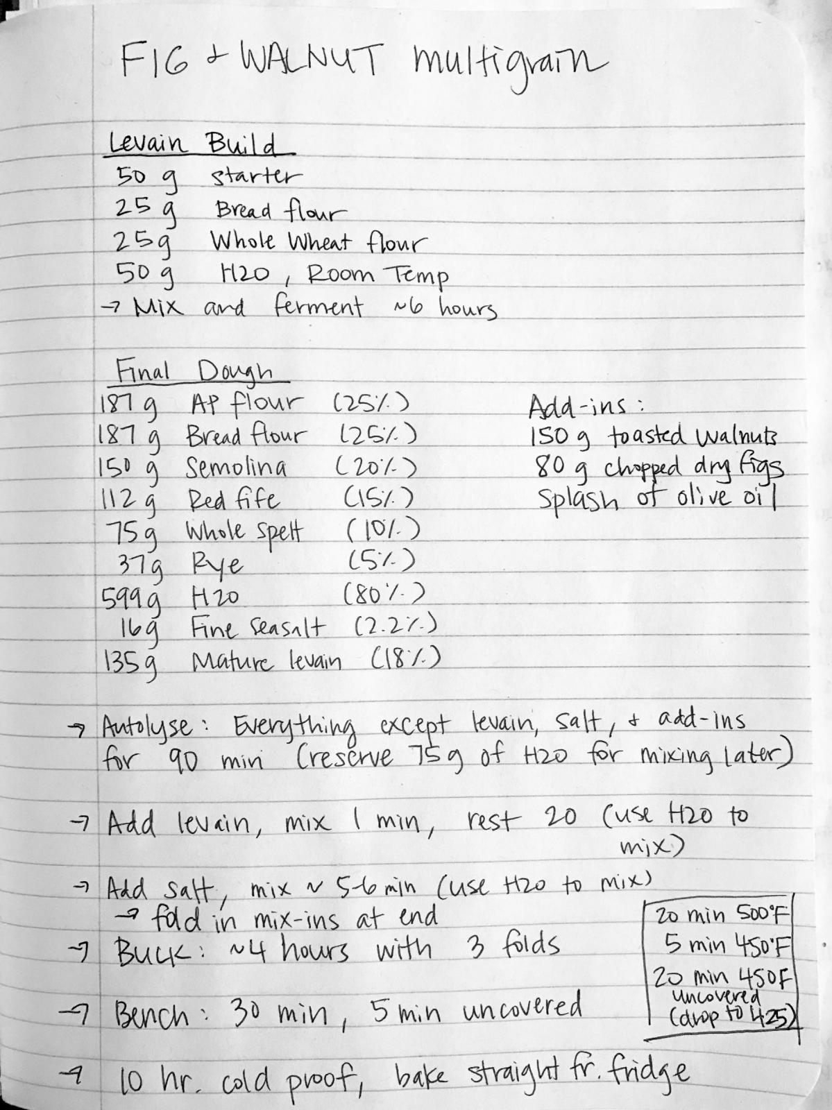 I've been thinking of making a fig and walnut loaf for awhile and finally got around to trying it this week. It turned out very well and it's a formula I'd like to tinker with again.