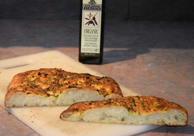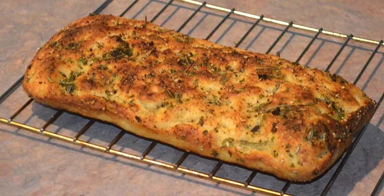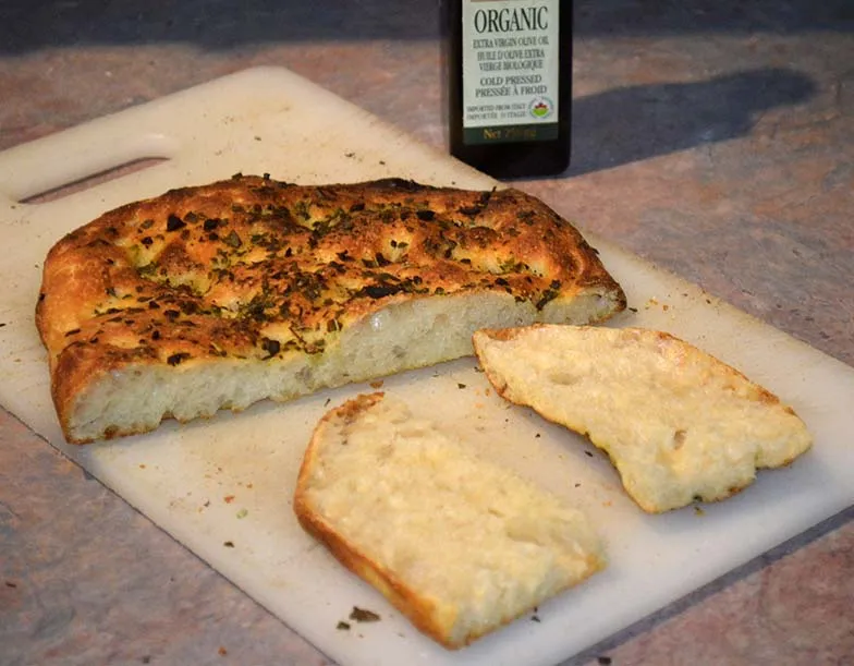 This has been a very enjoyable baking project. This was the second half of the last focaccia dough that had rested in the fridge for 3 days prior to baking. I changed up the herbed evoo using dried basil this time. I found the fresh basil used in the last batches tended to burn and become a little bitter. This is not an issue with the dried herbs: rosemary, basil, oregano and Italian seasoning.