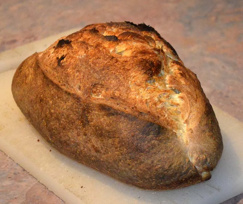 The two small changes were to put the loaf into the fridge for the last 10 minutes of proofing and dipping my lame in water prior to scoring. Ear on the first bake at 200 grams and a half ear on this one at 370 grams. I will call this loaf VanGogh as it only has a half an ear.