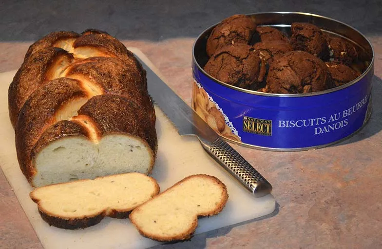 Well after a solid week of rain and very heavy rain the last couple of days the sum has finally come out. Shown is pulla left and double chocolate expresso cookies on the right. I bake a loaf of pulla every week or two and my rolling out of the braids and braiding is slowly getting better.