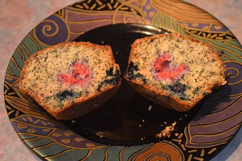 Raspberry, blueberry, poppy seed muffins and other bakes