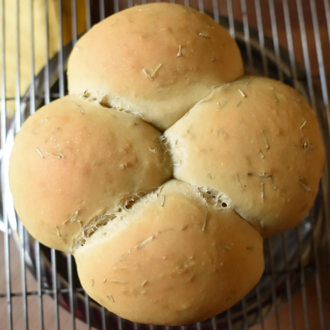 My very first attempt to make a Hokaido milk bread, but unsweetened. I added some dried rosemary for the aroma, and a little olive oil instead of butter. I didn't use eggs either. The crumb is soft, but not very open, much more akin to a 'normal' sourdough.