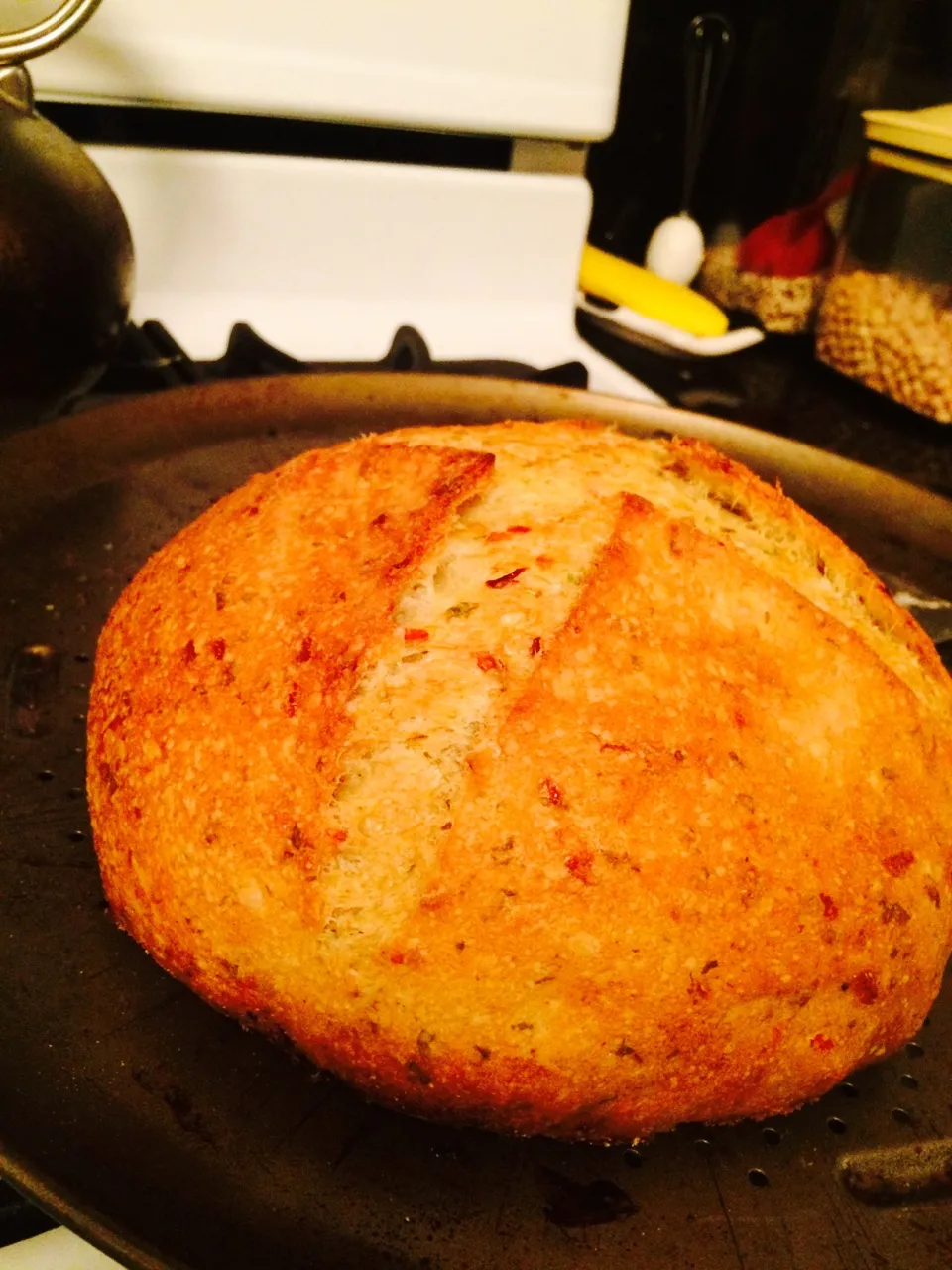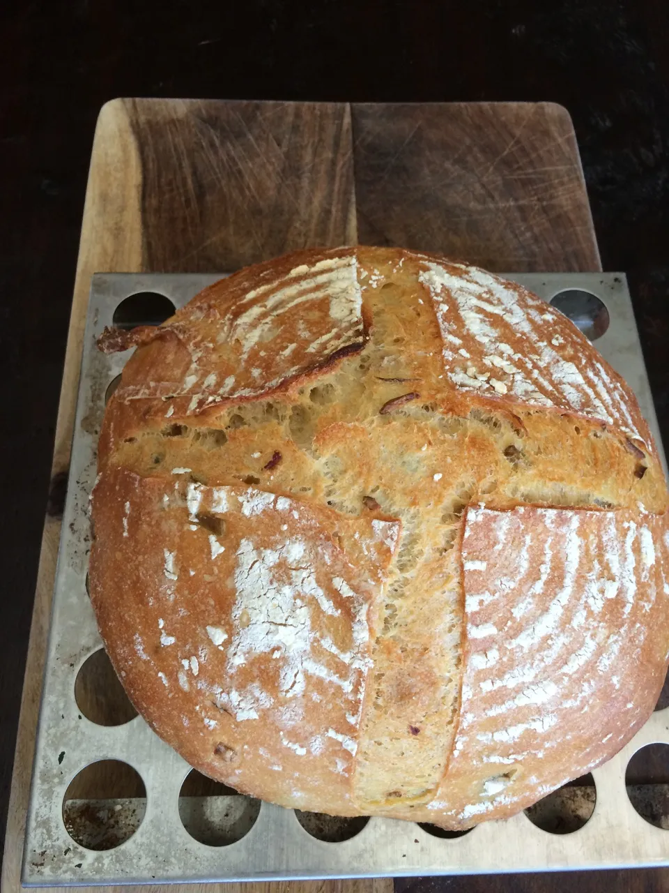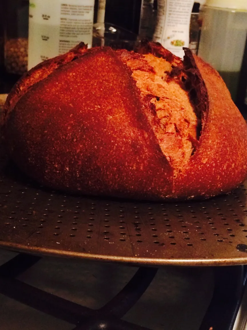 We just got back from travel, so my two starters (San and Fran) came out of the fridge on Saturday evening after 2 weeks of hibernation. They got only one good feeding after warming up, doubled overnight, and were added to this bread Sunday morning. We were in Pennsylvania, which is near Cleveland and just returned to the Bay area like the Warriors.