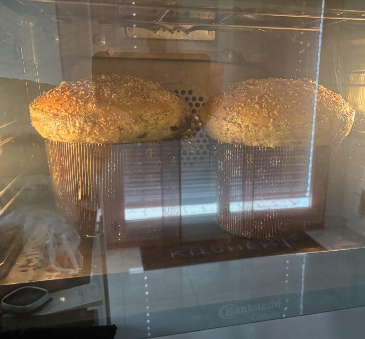 Managed this time to keep the panettone in one piece 💪 very shreddy, oven spring is still work in progress. Open crumb is far away ...
