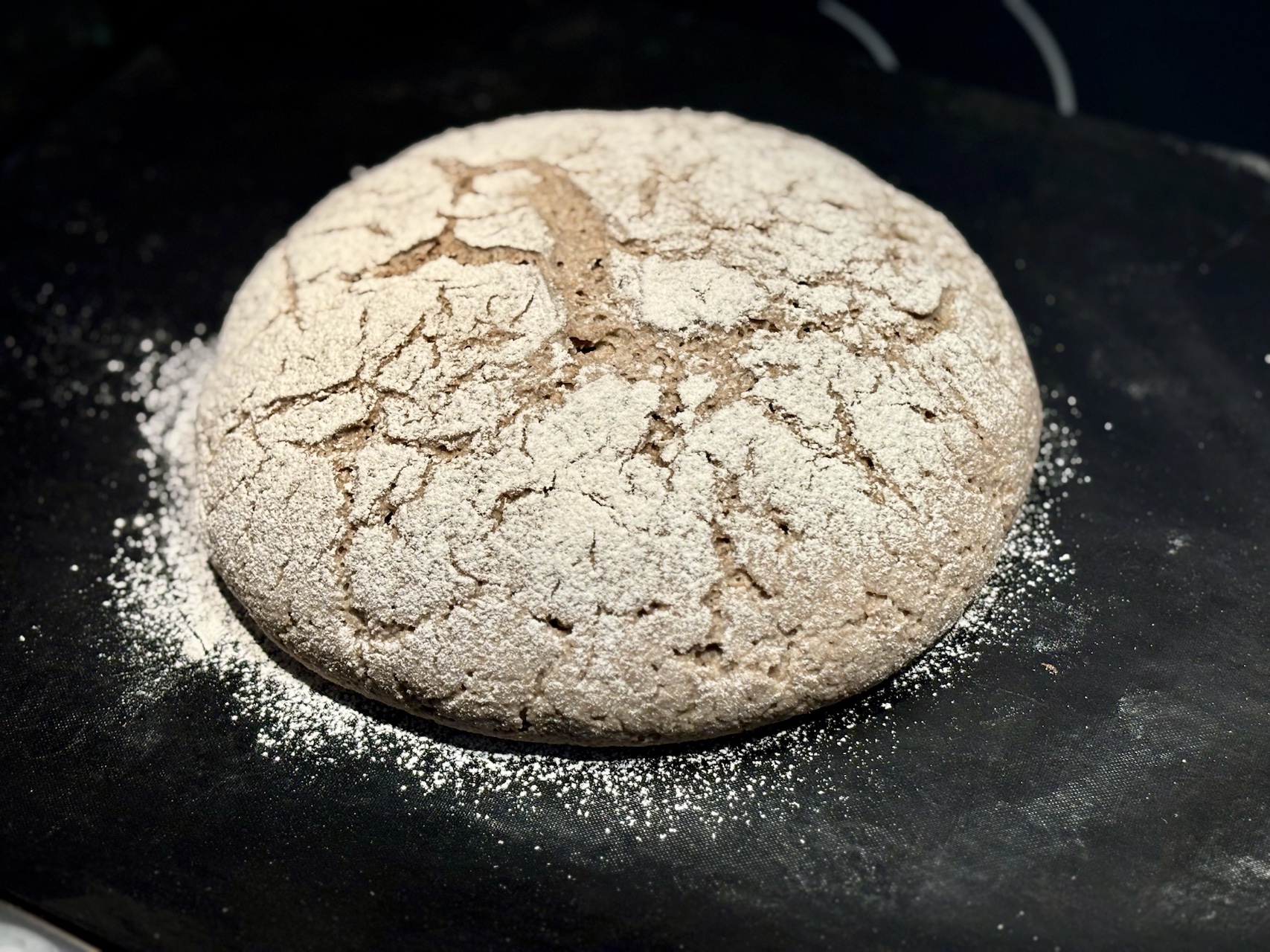 33% Buckwheat, 67% white flour, PM, sesame seeds on top.