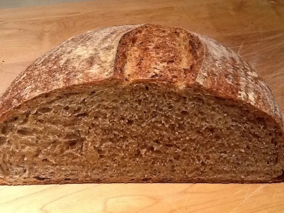 Hey all I just wanted to post a couple pics of a daily sourdough that I've been practicing. The recipe and shaping advice came from a fellow TFL user and I am quite happy with the results. The bread is 20%whole wheat, 70% hydration, developed using Stretch n Folds, and is shaped, then retarded overnight and baked cold in a hot dutch oven at 450 with lid on for 13 min and then lid off for 25 more min.