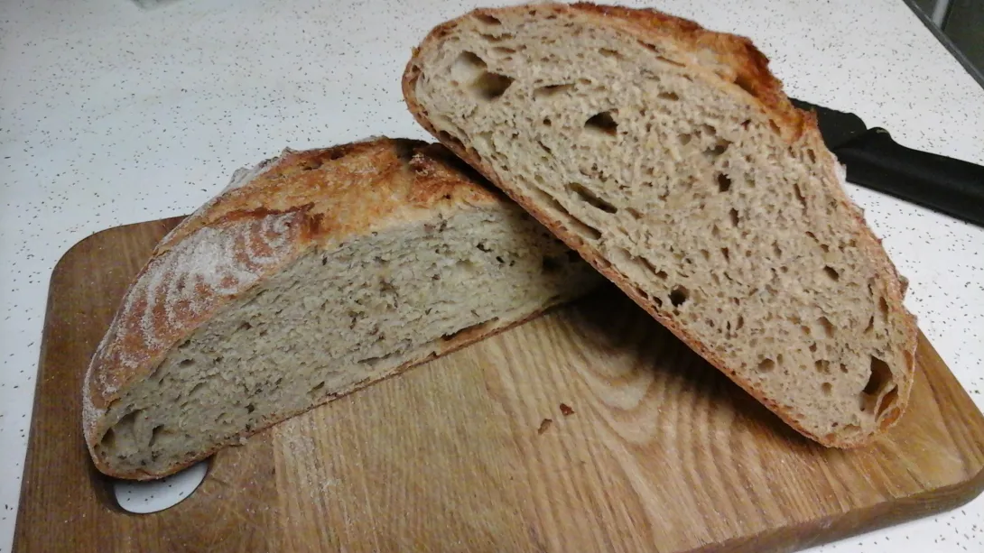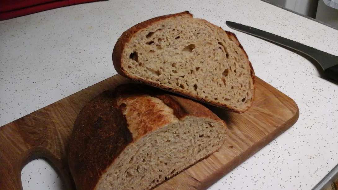 Sprouted flour, rye and corn soaker, YW, sourdough bread.
