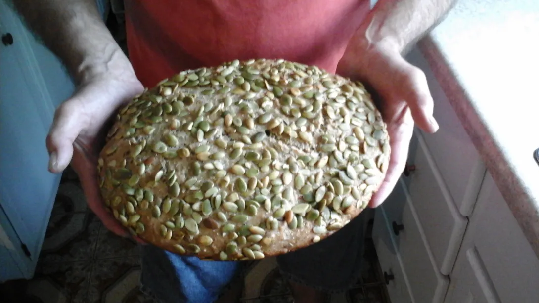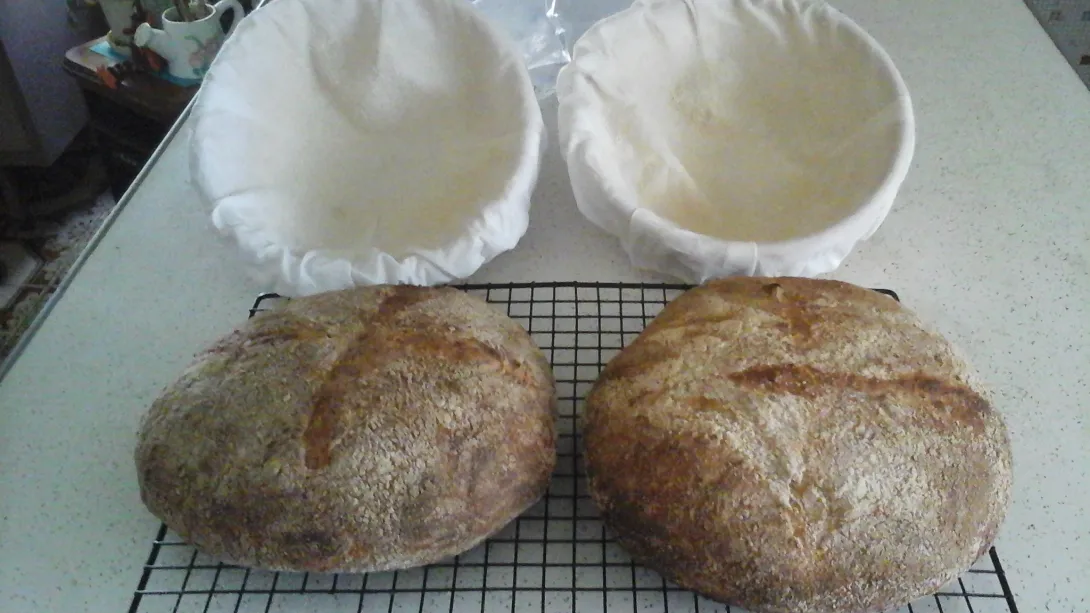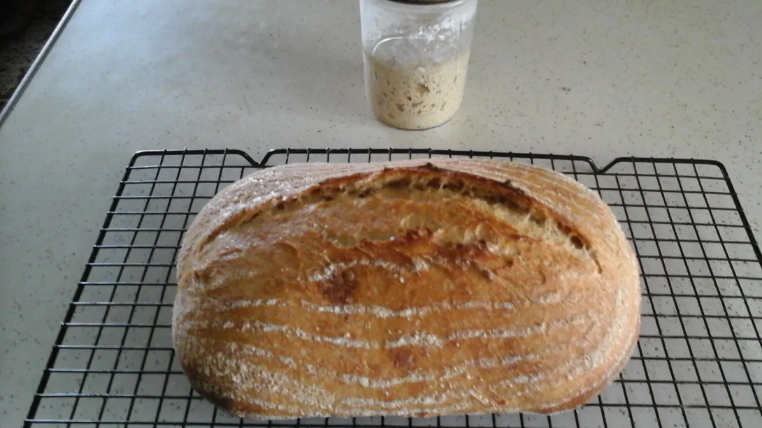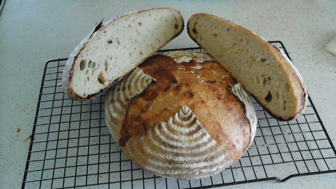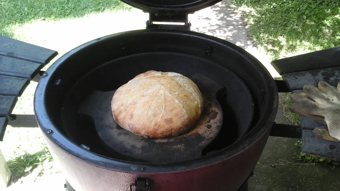 This bread is a continuation of trying to perfect a technique of baking in a Kamado style but metal grill. The bread is also an experiment because of using a high percentage of old dough something I've never done before (had a left over ball of natural leavened pizza dough). I know I really need to concentrate on one thing at a time but can't seem to help myself.