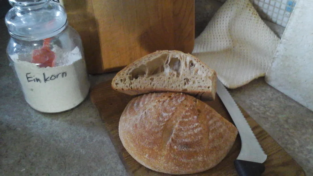 Got the einkorn berries Friday so the experimenting begins. 350g were milled with a high speed mill 335g came out the rest being stuck on every available surface of the mill to the point that it had to be washed instead of brushed off like usual. The flour was fluffier than the white wheat that is my standard. I'd show you a picture but can't figure how to do it.
