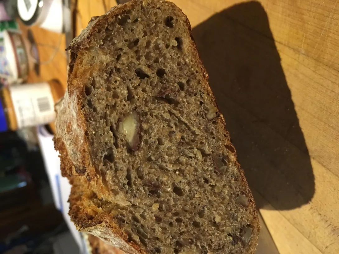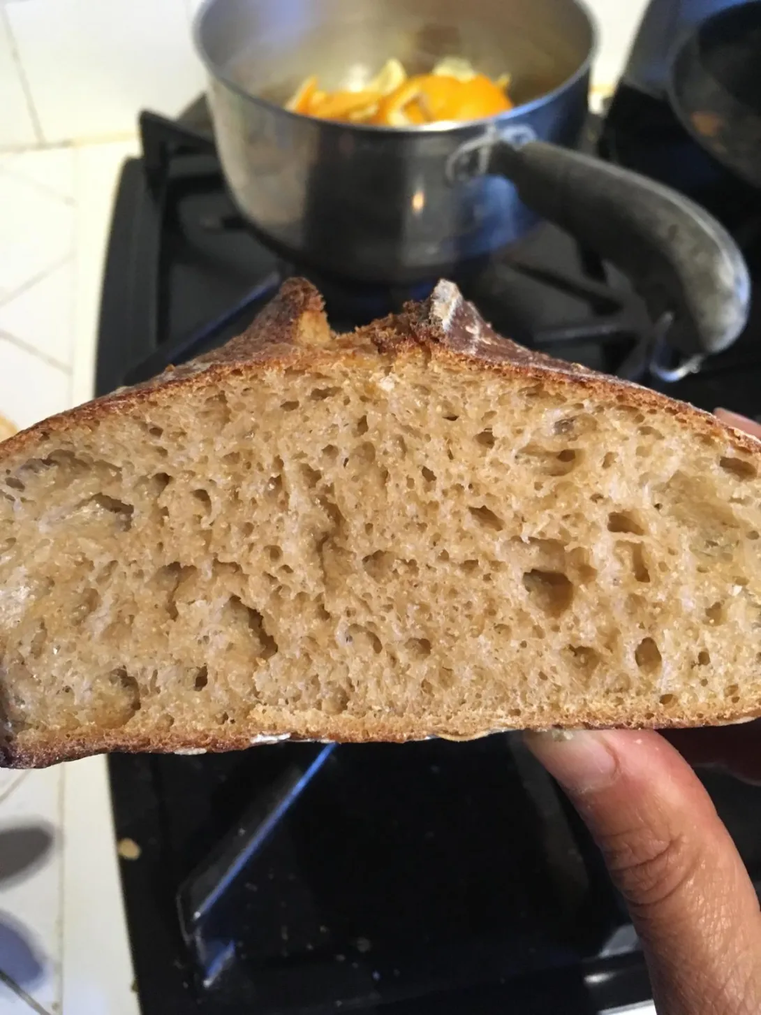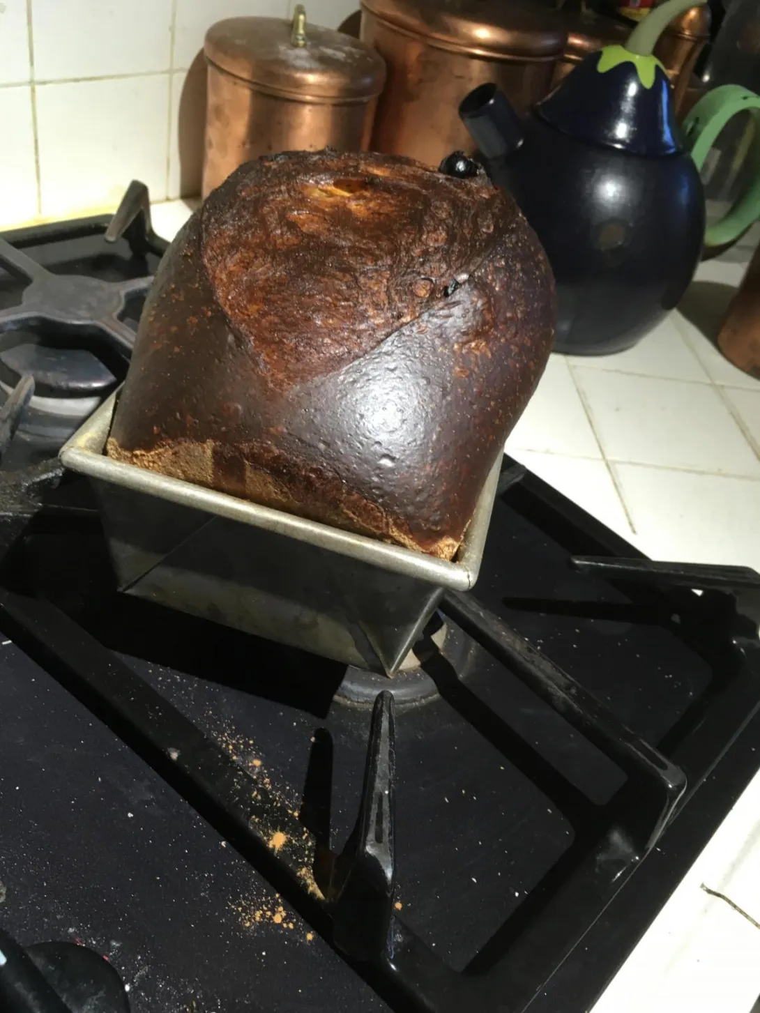 Using a recipe posted in 2013 by d_a_kelly for Panettone a tre impasti in June. My adaptation was to use mango yeast water as the water to build the first impasto and then a small amount ( 5gr) of stiff rye starter in the second dough build.