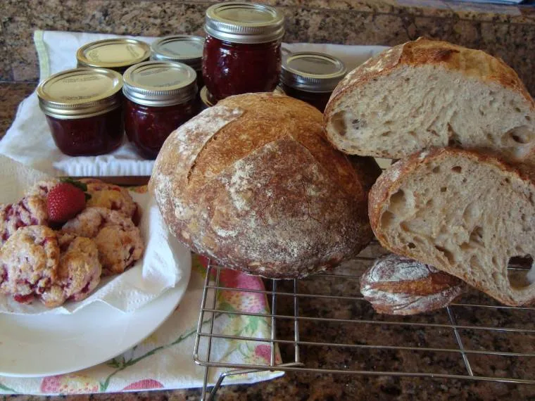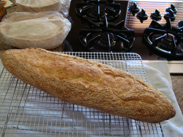 I had a single large boule of a 'Basic 100% sourdough'. The formula I used with some minor changes is from 'Northwest Sourdough's' bread site.