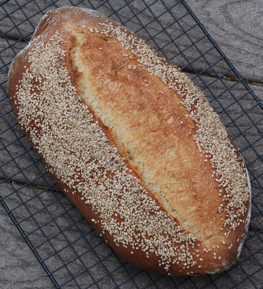 The other day, I accidentally picked up the wrong flour. I thought I was grabbing the Bob's Red Mill White flour but instead ended up with BRM whole wheat pastry flour. I'm not much for making pastry and the whole concept of whole wheat pastry eludes me, so I decided to try this flour in yet another variation on the pain au levain I've been experimenting with for the last few months. On my first try I used the pastry flour as 12% of the total flour with 87% White flour and 1% rye from the starter. The bread came out