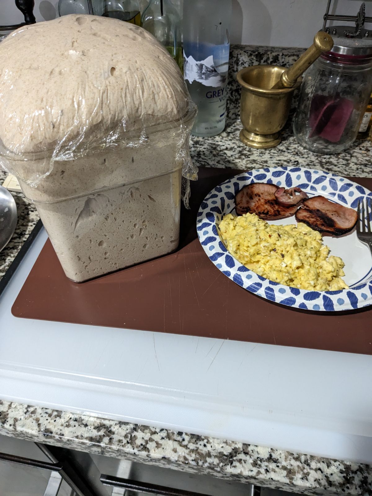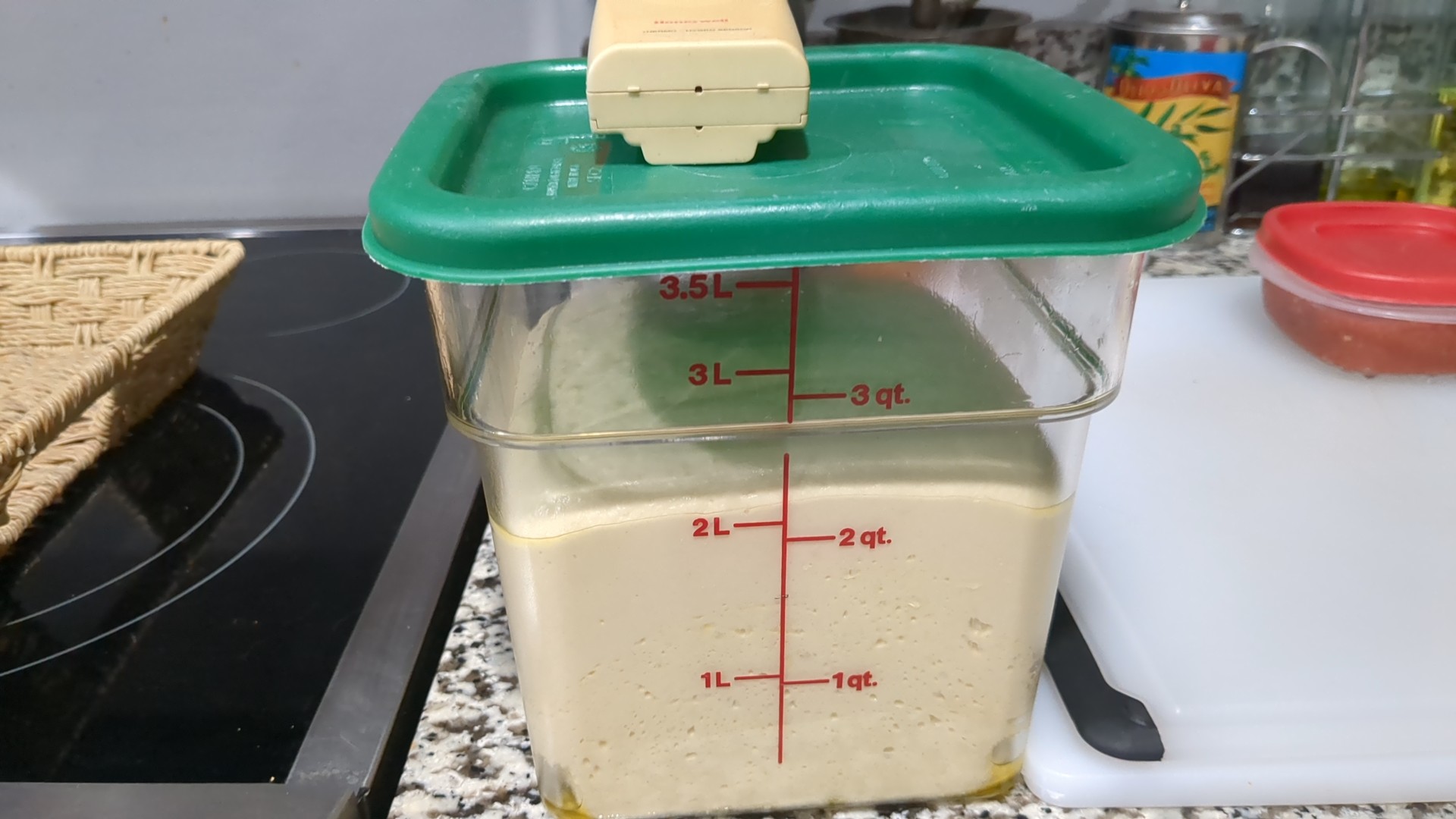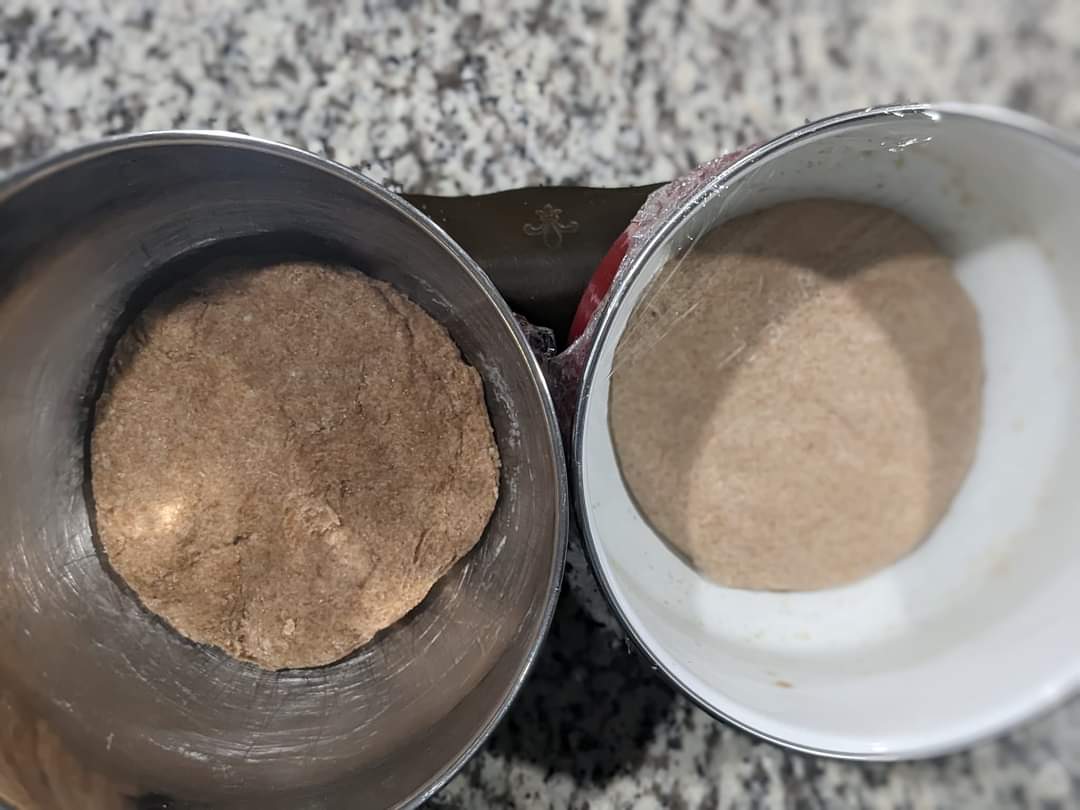 Day #2- have all the final dough ingredients weighted and ready. Prep the ingredients for the mechanical mixing. Mix the final dough, with the goal of achieving a soft cohesive dough ball that is slightly tacky and just about passes the window pane test. Bulk fermentation until 1 1/2 times the volume is achieved.