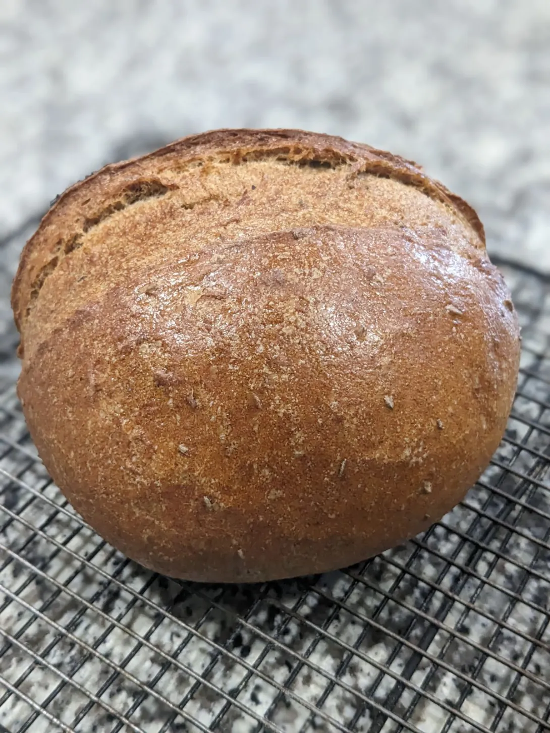 Peter Reinhart's "Epoxy method" Master whole Grain formula.