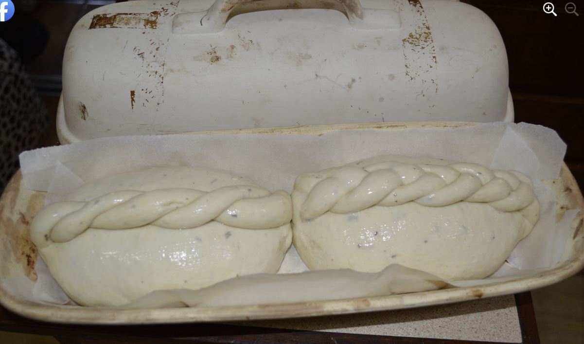 The Garlic and Herb dough placed into the cold Sassafras and washed with cornflour paste