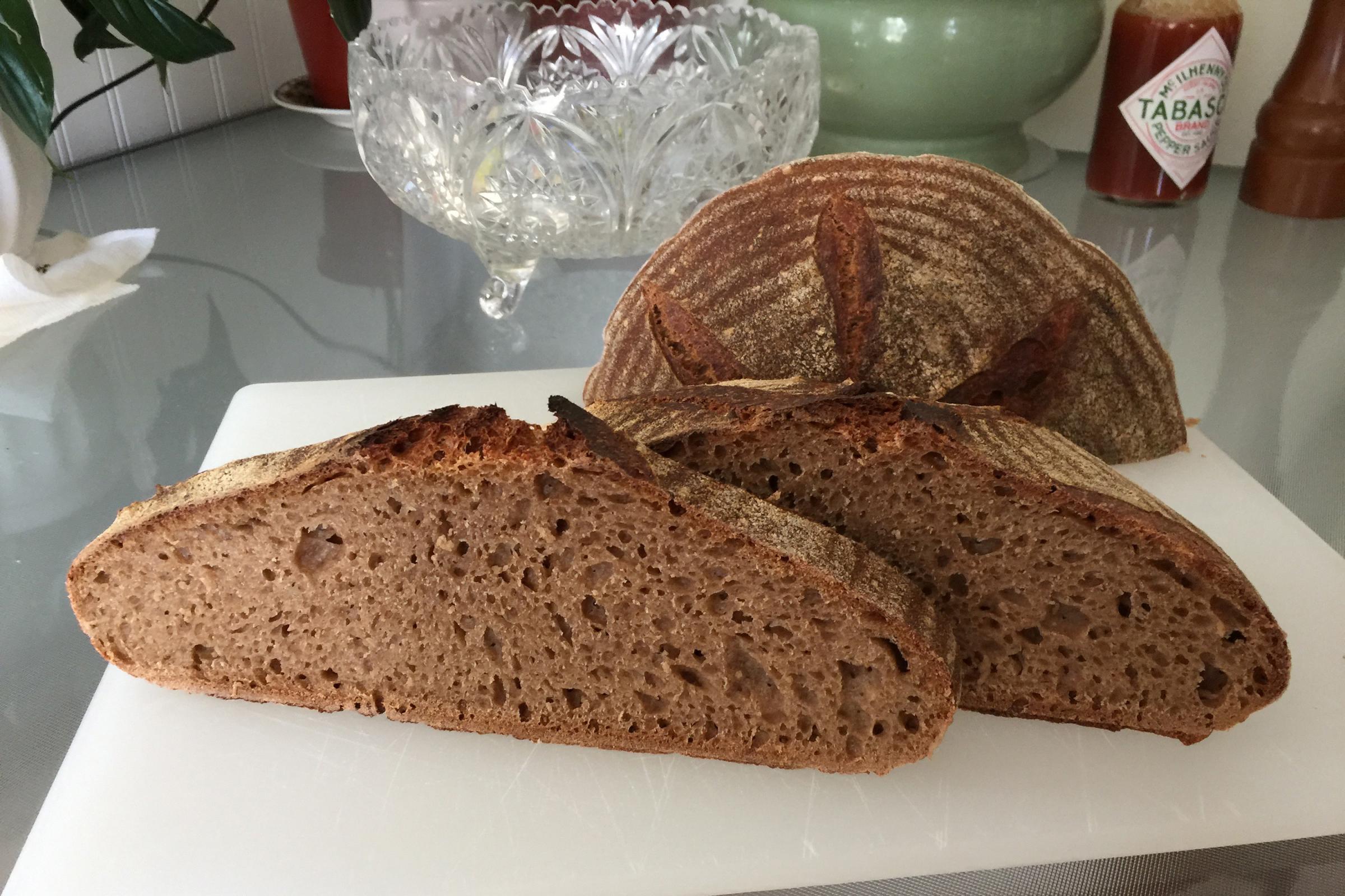 I bought some "Organic Madagascar Pink-Red Rice" at Whole Foods a few weeks ago and wanted to use some of the leftover cooked rice in a bread. I overcooked the rice a little bit when making it for dinner but it worked out perfectly in the bread. You can see the grains in the crumb and it added a nice subtle but rich flavor to the final bread.