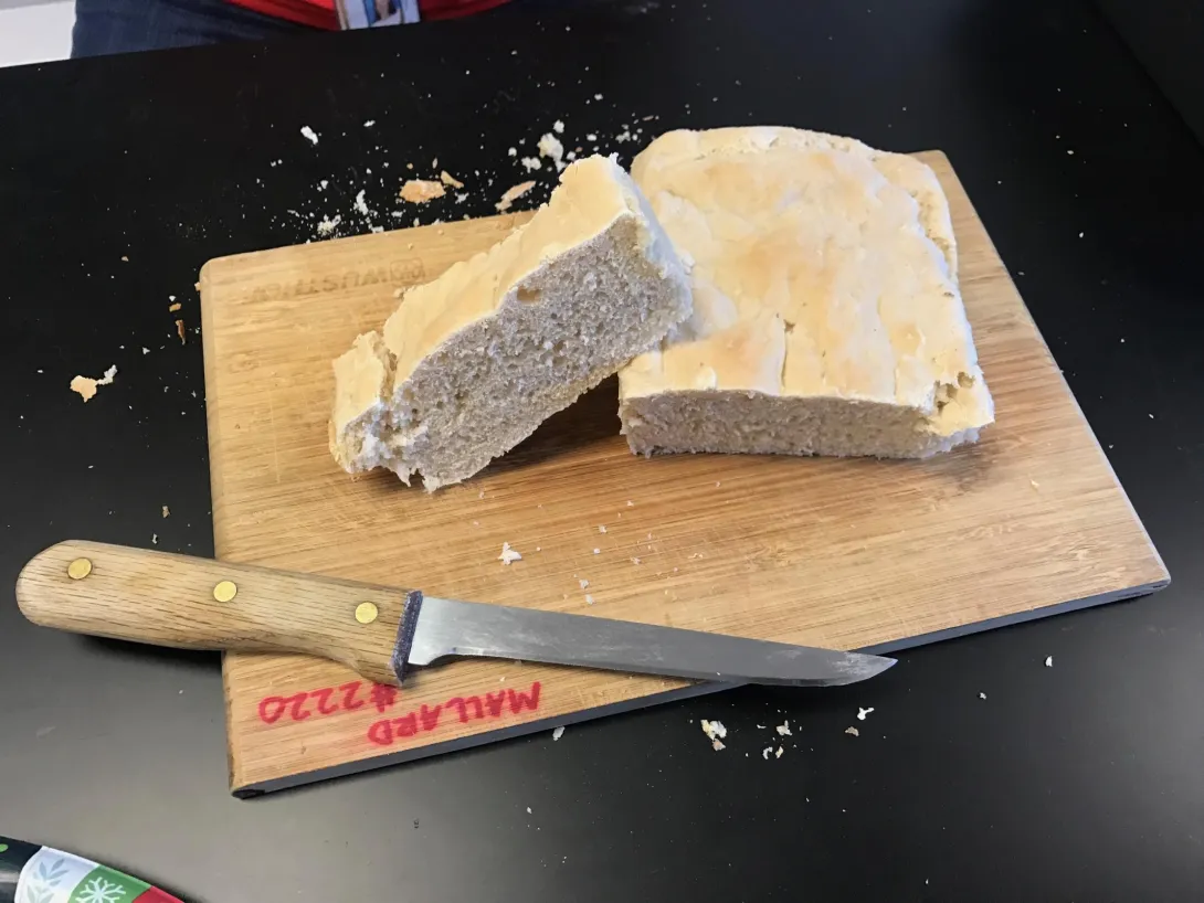 So we were told to make bread… Something we have never done before. We found this exciting and fun. First we needed to do some research on how the ingredients worked and how much of each we needed to add. To start, we were given a base recipe that we got to refine to our liking. Then the next day, we tested our recipe, we took a ziploc bag and added ¼ cup of flour, and ¼ teaspoon of yeast and mixed it together. Then we added 4 tablespoons of water to the mixture at 120-130 F. After that we let it rest for 10 mins then added another ¼ cup of flour and mixed that.