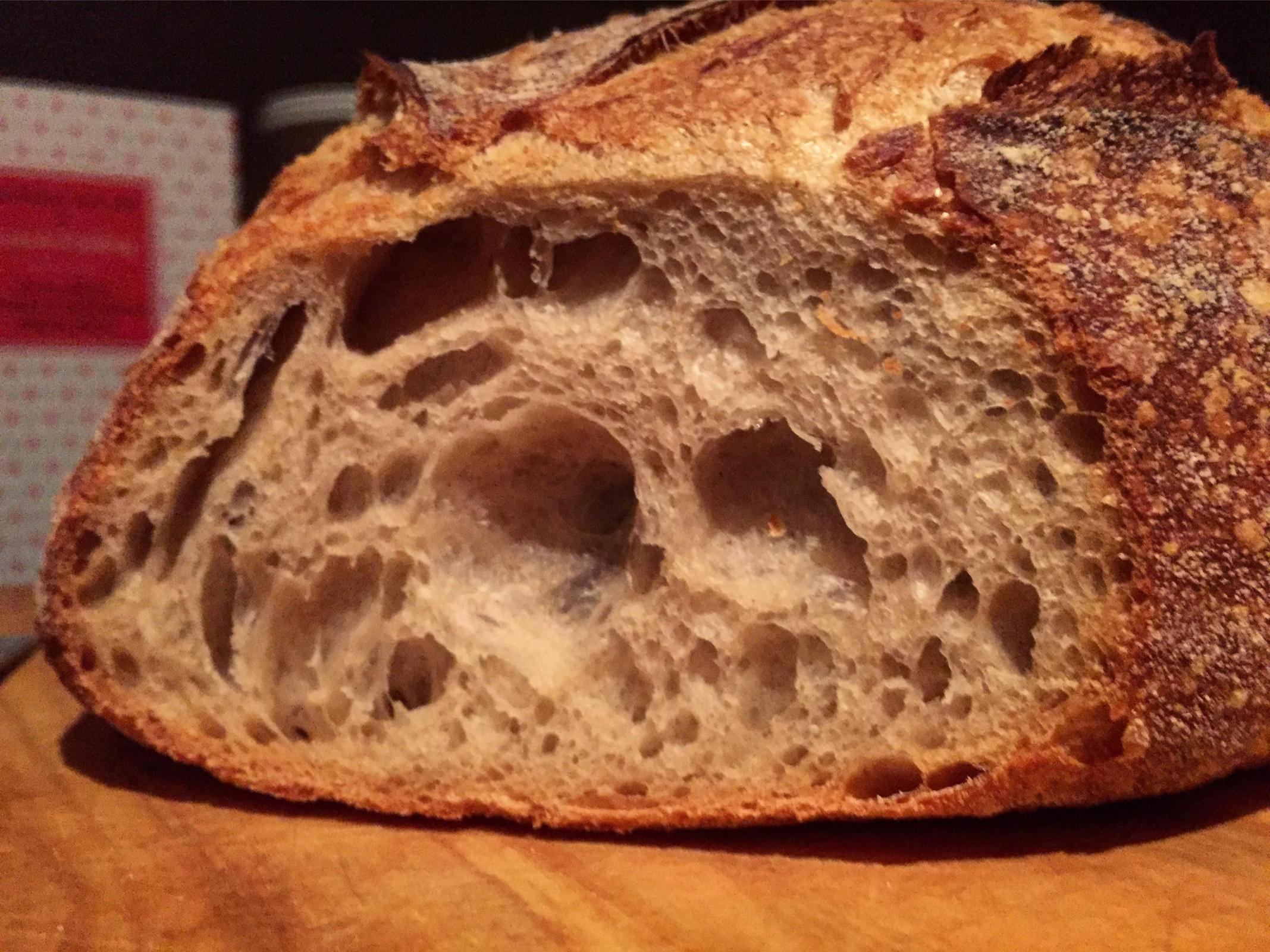 Our first experiment, some time last year, was a very, very long ferment sourdough. That loaf was modestly successful -- her symptoms were relatively mild.