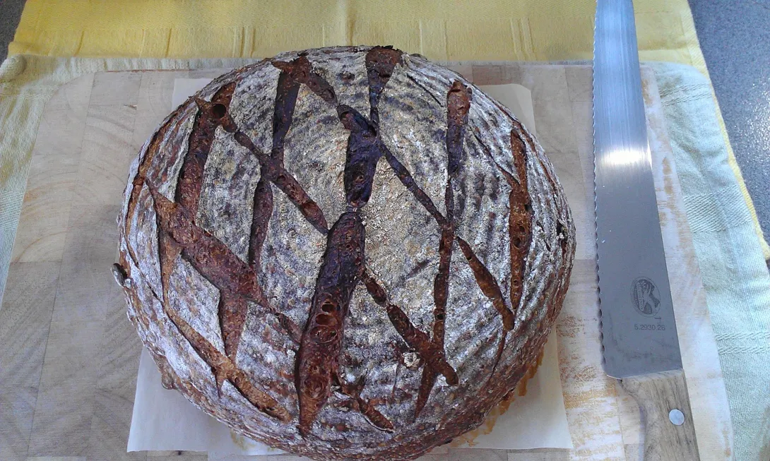 Five Grain Sourdough loaf from The Fundamental Techniques Of Classic Bread Baking, The French Culinary Institute cookbook.