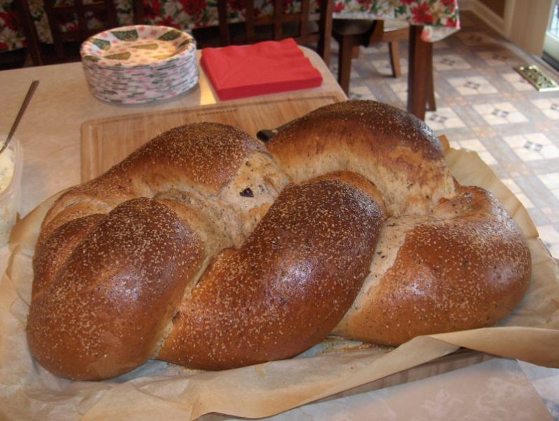 I'm a newbie breadophile and I've been baking nonstop for about three months. Most stuff I make is good, with the occasional clunked. This came out so good I wanted to share. We had a large family gathering on Christmas Eve so I wanted to make a special bread. I found this recipe on Food Network's site...