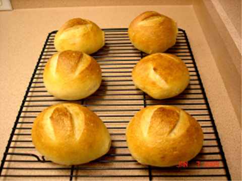 In the recent past a number of TFL bakers have asked me for the recipe for Bernard Clayton’s S.S. France Petite Pain rolls. I sent the recipe to all who requested. The requests got me to thinking. Mr. Clayton’s rolls are baked using the direct method, using only yeast for leavening. Recently I began thinking how this recipe might be improved, or at least made differently, with the addition of a poolish. With that in mind I began experimenting and testing the recipe and have come up with what I believe are rolls with a somewhat better flavor than a direct method baking.  The added flavor is, I believe, a result of using an overnight starter (poolish). Above are some photos and below is the recipe for anyone who may be interested in what I believe are really good breakfast or dinner rolls.