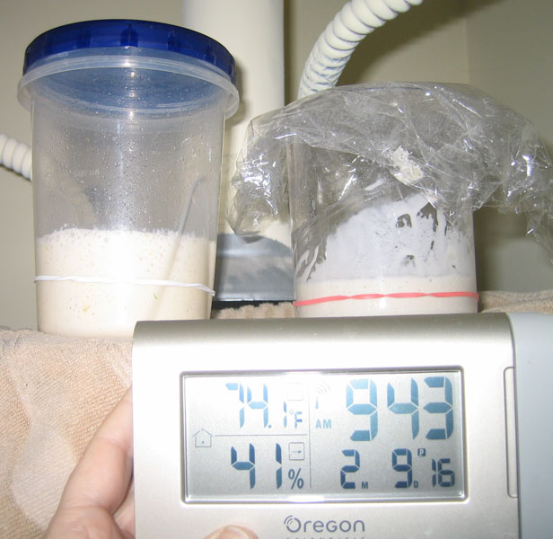Another issue I have with this thread is the plastic. When I made my first sd starter years ago the first lesson I learned was never to cover a new starter with plastic. Put it in a glass jar and, after mixing, it should be covered with cheese cloth. This gives all of the wonderful yeast floating around in the air a good opportunity to find the dough that hasn't soured yet and allow them to do their magic. Cover with plastic and you stand a good chance of suffocating the yeast before they have a chance to do their job. This is one reason why a lot of sd starters never start. Anyway, this is just my two cents but I've never done it this way and my starters have always been robust and highly active.
