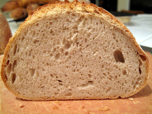 The resulting bread has a very nice flavor, but not significantly different from the pains de campagnes I make with my usual starter.